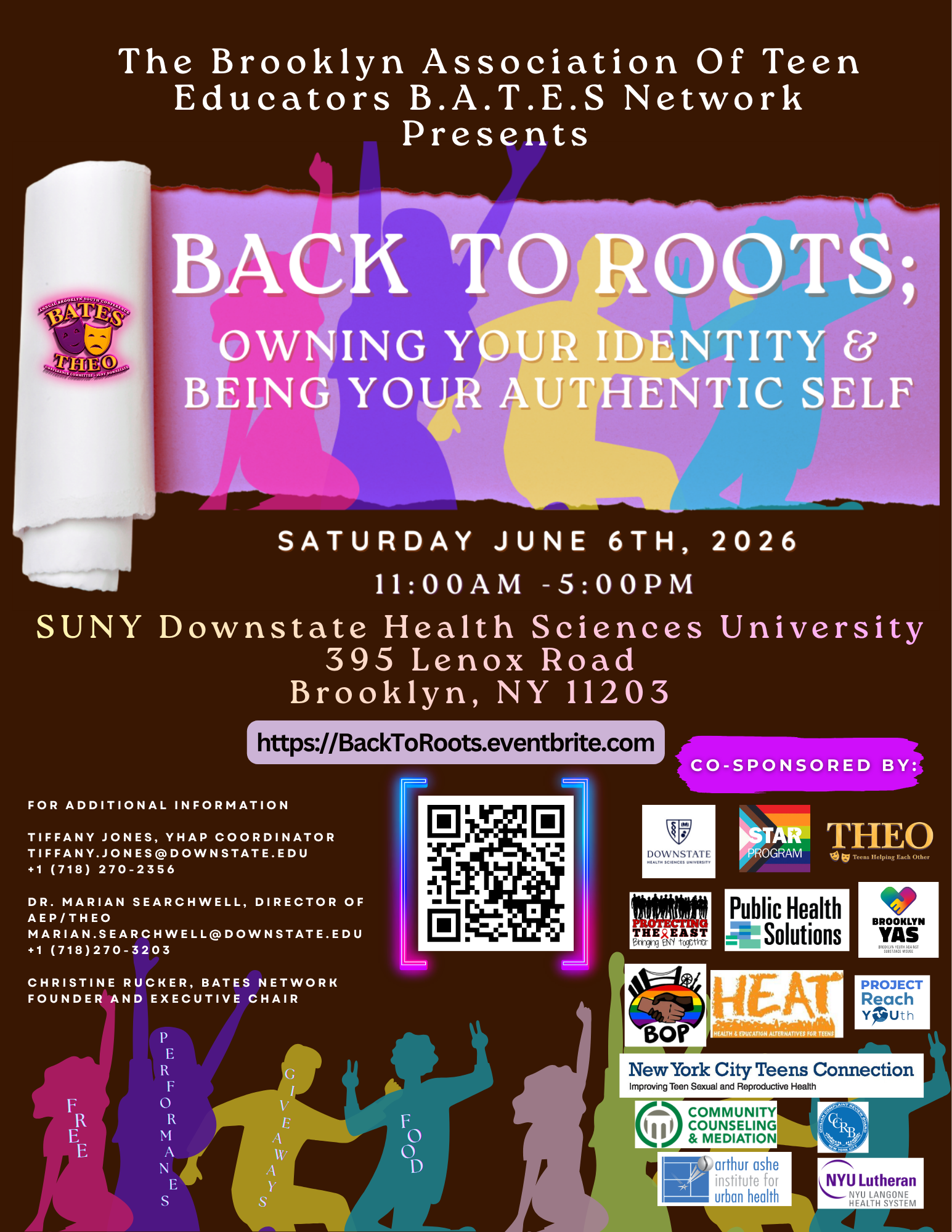 BATES Network 31st Annual Youth Conference and Theater Festival Saturday, June 6, 2026 11:00 AM 5:00 PM 11:00 17:00 Adolescent Education Program, THEO SUNY Downstate Health Sciences University 395 Lenox Road, Brooklyn, New York, 11203 U.S.A. (map) Google Calendar ICS